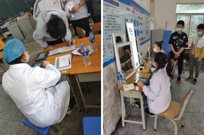 “无纸化体检”是以高考考生身份认证终端、计算机终端等硬件设备为基础,利用互联网、体检信息化软件系统相结合的信息化平台实施的高考体检新模式。在体检现场,考生通过刷身份证将信息录入平台,医生实时将体检结果录入平台,实现体检信息采集过程无纸化、体检结论数据化,方便高校查阅、大数据分析及档案化管理等。