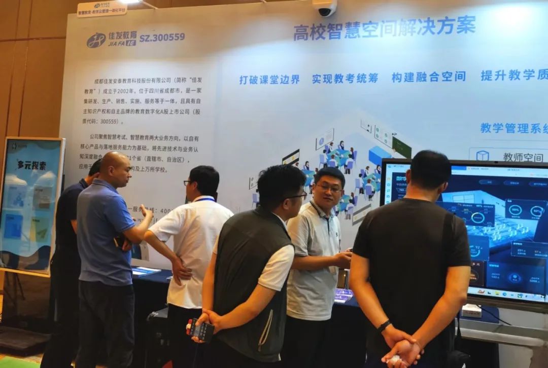 研讨会同期,还在现场设立了智慧教育产品体验区,展示佳发教育的智慧校园场景融合建设方案。该区域展示了智慧教室产品,呈现了高校多系统、多场景融合建设的智慧教室空间方案。参会专家和嘉宾对其展示表现出了高度的兴趣,积极参与体验区的产品演示和交流互动。